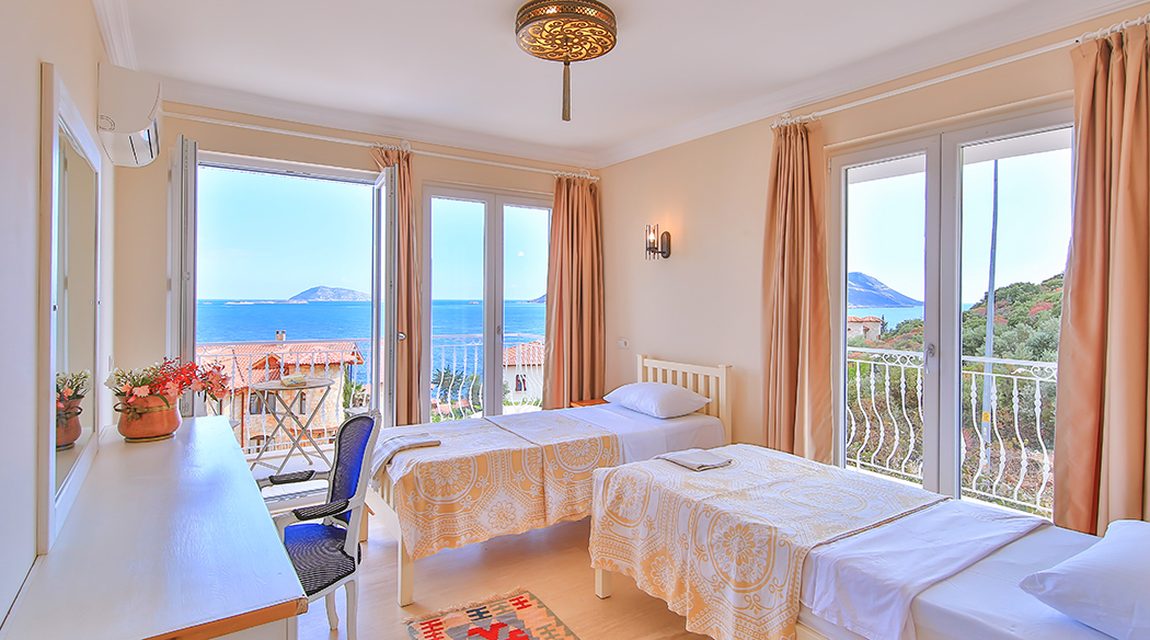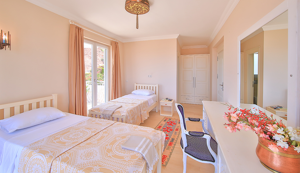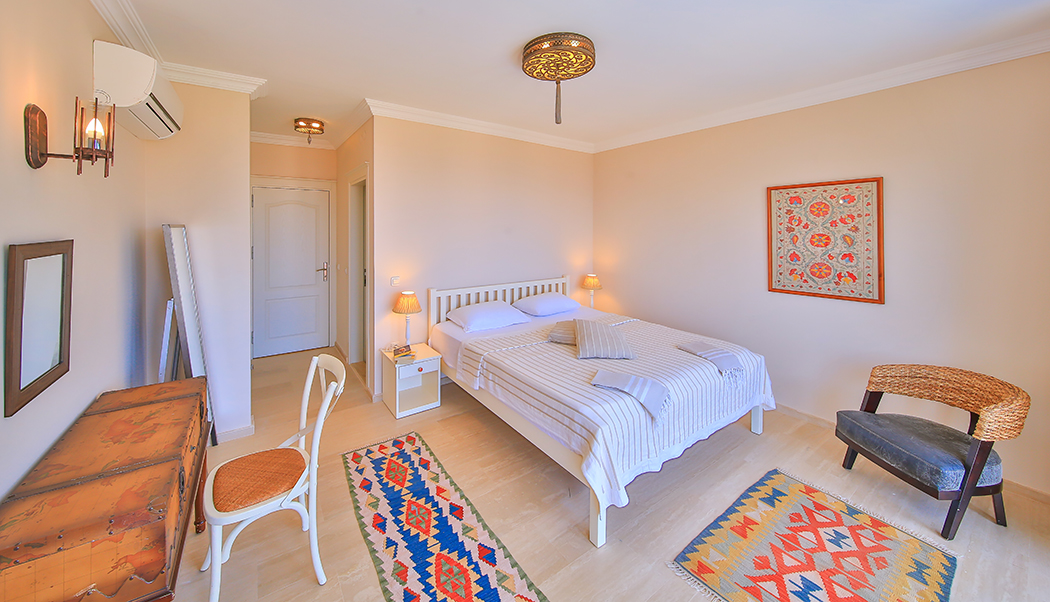 Located right next to our hotel, Villa has four bedrooms and is 280 square meters. Villa has a separate courtyard and pool. Each room of our villa has a separate toilet and bathroom. Villa has a large veranda and sun terrace. On the ground floor of our two-storeyvilla, there is a fully equipped large kitchen and living room. One of the rooms in the villa has a bathroom with a bath, the others a shower. You can stay up to 8 people in our villa, which is decorated to meet all your needs, and you can enjoy your holiday in your private pool.
